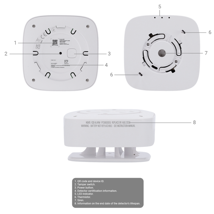 Detetor de CO e Termovelocimétrico Ajax AJ-FIREPROTECT2-HC-RB-B - Sem fios 868 MHz, Sirene 85 dB