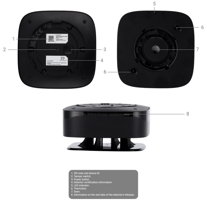 - Interligação com outros detetores Ajax para alarmes simultâneos.