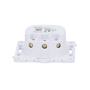 - Terminais: 1 terminal para cabo de fase de alimentação e 2 terminais para cabo de alimentação de dois aparelhos de iluminação ou outra carga (sem fio neutro)